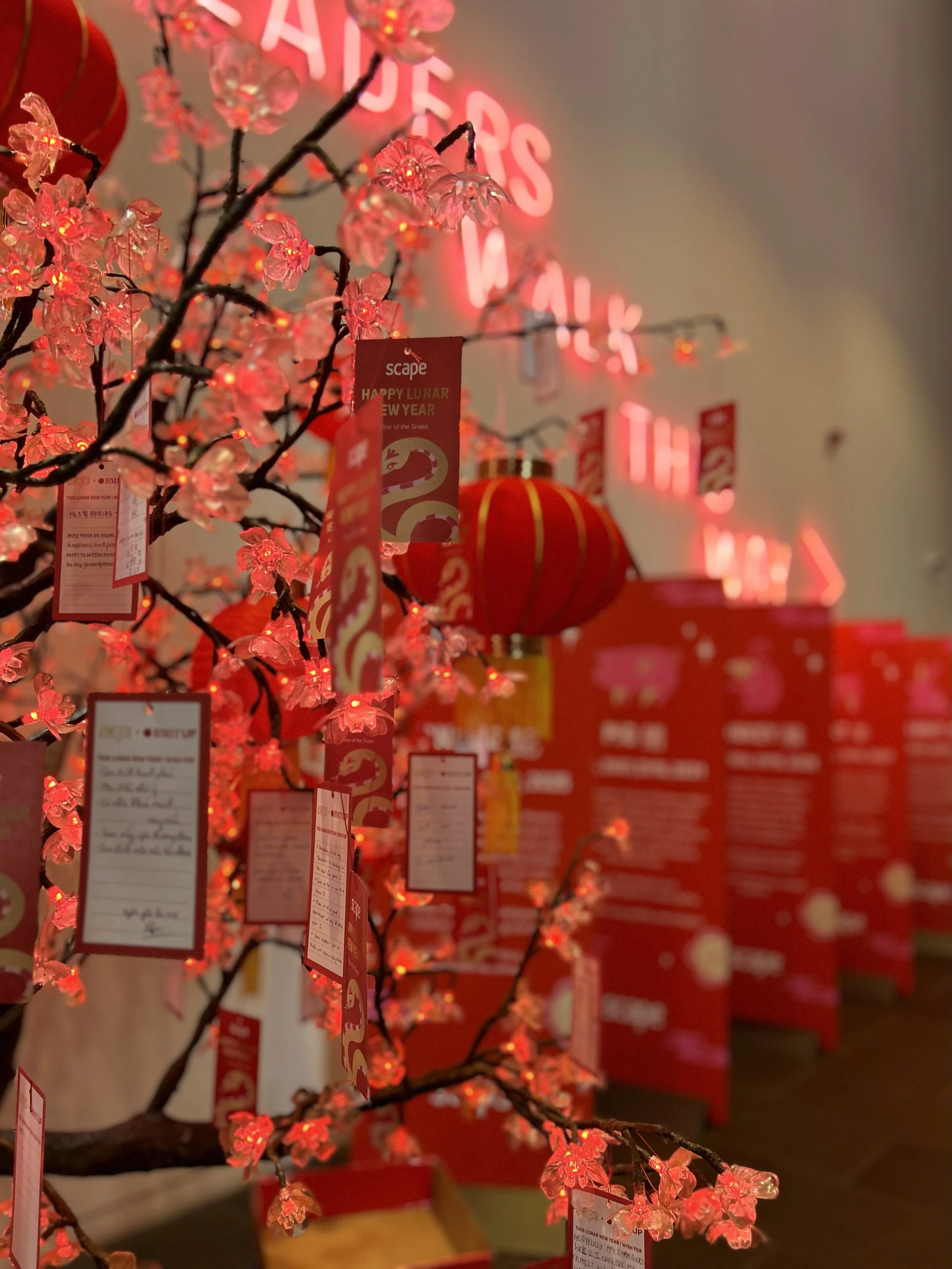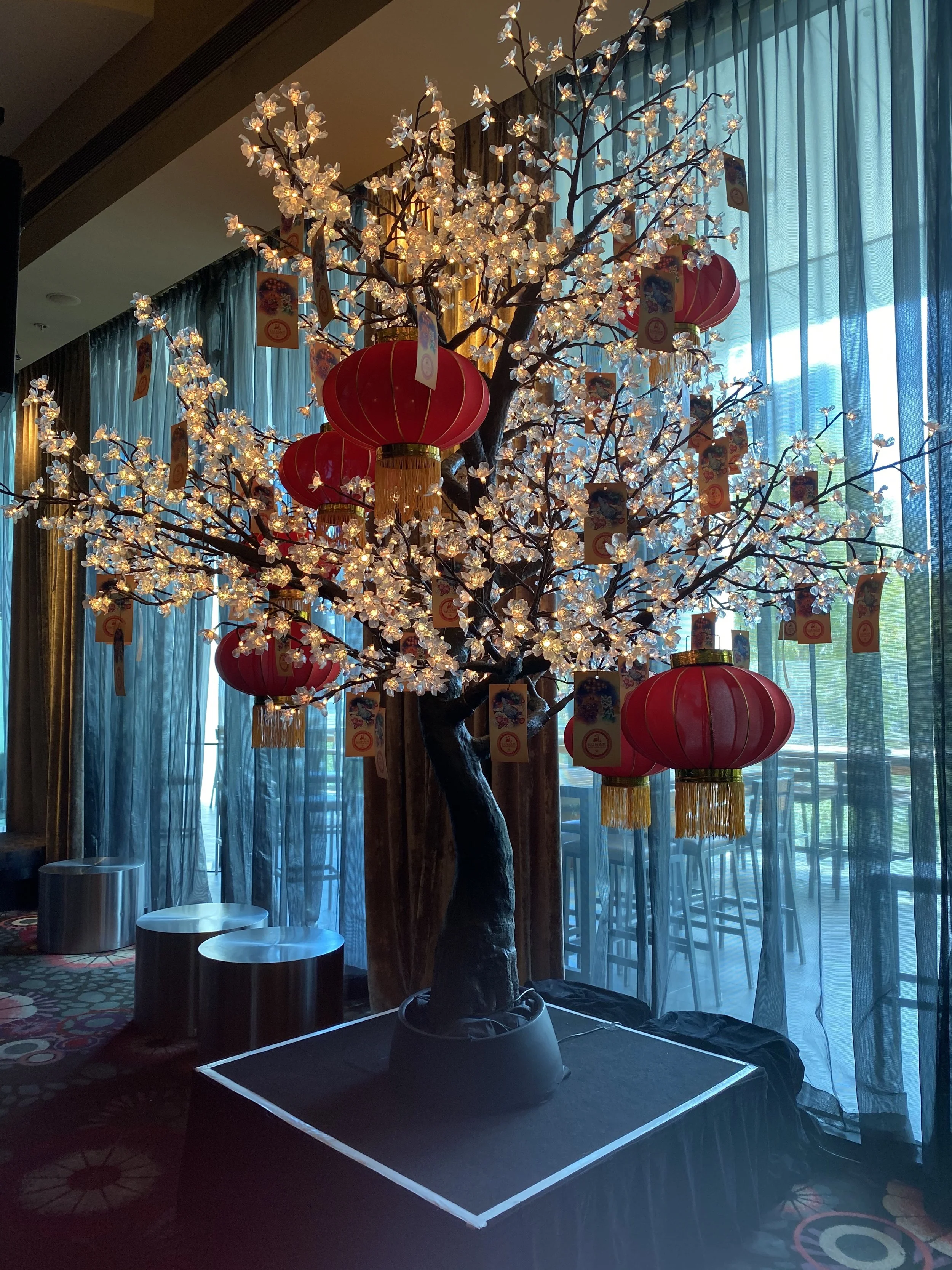 During Lunar New Year, people travel to Hong Kong to see the very old trees and to leave their wishes. People write their wishes on red wish paper and then tie them to oranges with colorful ribbons. What about incorporating the same idea into your event using an artificial tree?
